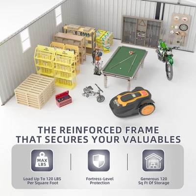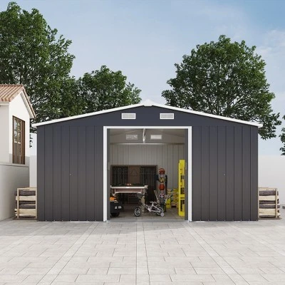 Extra Large Size10x12FT storage shed provides ample space for storing a wide variety of items, make it suitable be tool storage, bicycle shed, utility room, or pet house, storage capacity 876 Cubic FeetThe surface of the color steel plate is covered with a special protective film, which is carefully designed to show human care. In the transportation and installation links, it effectively prevents scratches, bumps and stains, just like wearing invisible armor for the steel plate, so that it is free from damage. After installation, easily remove the protective film, immediately show the color steel plate clean as a new bright appearance, always keep beautiful and clean, greatly extend its service life, so that your iron sheet room always exude charming charmMultifunctional useThe versatile outdoor storage shed is designed for multipurpose use, serving as a convenient garden storeroom, a cozy pet shelter, or an organized garbage collection chamber. It is perfect for the backyard, garden, or patio and serves as an excellent shed house optionThe Outdoor storage shed, measuring 9.5 x 11.91 FT, offers ample space(Internal capacity up to 560CU.FT) for all your outdoor storage requirements. This durable metal garden shed is applicable for storaging accommodate snow blowers, shovels, outdoor chairs, bicycles, and toy cars.Additionally, you can consider purchasing storage racks to optimize the organization of items such as shovels, umbrellas, antennas, escalators and more on this versatile outdoor storage solutionRugged 0.25mm color steel plateSelected 0.25mm thick high-quality color steel plate to build the main body, this thickness ensures that the iron house structure is stable and solid, with excellent impact resistance and pressure resistance. Whether it is dealing with the severe weather of howling winds and torrential rain, or to withstand the collision and wear of daily use, it can be as stable as Mount Tai, for you to protect the indoor space for a long timeWeights & Dimensionsstorage shed dimensions10*12FTColorGrayMaterialMetalProduct DimensionsW 138.97″*D113.77″*H79.52¡±Product door sizeW40.94″*H65.74¡±G.W251.76lbsN.W233.02lbsStyleBackyard Garden Tool ShedWater Resistance LeveWaterproofRoof bearing30kg per squareUltraviolet Light ProtectionYesAssembly RequiredYes