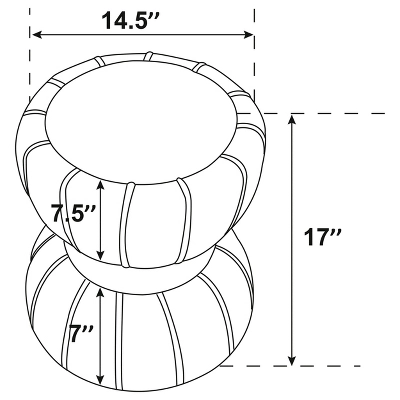 Product DetailsProduct Dimensions: Ottoman: 14.5inW X14.5inD X17inH Product Description: Put finishing touches on a chic decor with a modern glam ottoman. Its hourglass silhouette is playful and elegant, with a wide band highlighting in a bright gold finish. The round ottoman is a compact addition, offering a perfect spot to prop your feet. It easily serves as an extra seat when entertaining, and can even serve a spot to stash a book or your phone. The ottoman features velvety soft upholstery in a chic color, with vertical piping that adds character and dimensionality. Listing Includes:1pc Ottoman Only.