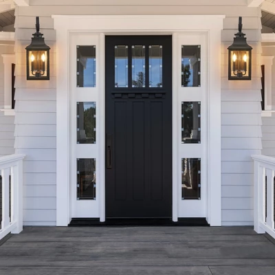 23″(H) 1-Pack Outdoor Wall Lantern Light ¨C Vintage Black Metal Sconce With Clear Seeded Glass For Porch, Patio, And Garden (Bulb Not Included)