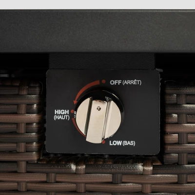 28inch Wicker Square Fire Pit Table¡ï¡ï¡ïNotice¡ï¡ï¡ï:¡ïNOT Suitable for Natural Gas!PE Wicker BodySteel TabletopSteel FrameETL ApprovedStainless Steel Burner,With Piezo Electronic IgniterFuel: Propane / Liquefied Petroleum GasArea Heated: 20 Sq.FtBowl Depth: 2.2inchHousing Material: PE WickerTabletop Material: SteelFlame Adjustable: YesSteel Lid: IncludedHeat output: 50000BTURain Cover: Not includedRocks: IncludedGas Regulator with Hose: IncludedGlass Windshield (Guard): Not IncludedLNG(Natural gas): No SupportOutdoor Gas Fire Pit – Exquisite AppearanceThis outdoor gas fire pit boasts a distinctive and textured look. The main body is crafted with a deep – brown imitation rattan weaving technique, showcasing natural and rustic textures, which combines aesthetic appeal with durability. The upper part features a black square metal panel, simple and elegant. In the square hollowed – out area in the middle, orange – yellow flames burn brightly, accompanied by dark volcanic stones, creating a warm and atmospheric visual effect. A control device with a knob is equipped on the side, facilitating easy operation. With a design that is both practical and highly ornamental, it adds a unique charm to outdoor leisure spaces.Superior Stainless – Steel Burner: Crafting a Quality Burning ExperienceThe burner of this outdoor gas fire pit is meticulously made from high – quality stainless steel. The sturdy and durable stainless – steel material offers excellent corrosion resistance, withstanding the challenges of the ever – changing outdoor environment and maintaining a good condition over long – term use.The burner features a ring – shaped design, with fine and evenly distributed flame outlets on its surface. This enables the gas to be ejected evenly and steadily, creating a uniform and stable flame that provides a warm and captivating visual effect. Paired with a well – arranged ventilation structure at the bottom, it ensures a smooth gas supply and full combustion, effectively improving combustion efficiency and reducing energy waste. Whether it’s an outdoor gathering or a moment of peaceful solitude, this stainless – steel burner can provide you with a reliable and outstanding burning performance.Convenient Operation, Adjust at WillThis outdoor gas fire pit is equipped with an advanced electronic ignition system. There’s no need for cumbersome procedures. With a simple press, the flame can be instantly ignited, eliminating the inconvenience and potential safety hazards of traditional ignition methods. It features a two – level fire – power adjustment knob, clearly marked “LOW (BAS)” (low – gear) and “HIGH (HAUT)” (high – gear). When adjusted to the low – gear, the flame is gentle, creating a warm and quiet atmosphere, which is ideal for moments of leisurely solitude or quiet conversations. When turned to the high – gear, the flame becomes vigorous, releasing more heat and meeting the heating needs of large gatherings. With simple operations, you can easily control the size of the flame, adding comfort and coziness to your outdoor time.