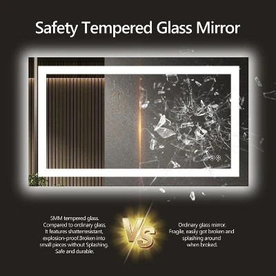 - [Safe & Durable]: UL-certified components with protective casing. LED lifespan: 50,000+ hours (45+ years at 3 hours daily use). Copper-free silver mirror with far lower corrosion rates than standard mirrors. Features 5mm tempered glass for shatterproof, explosion-resistant, and long-lasting safety.