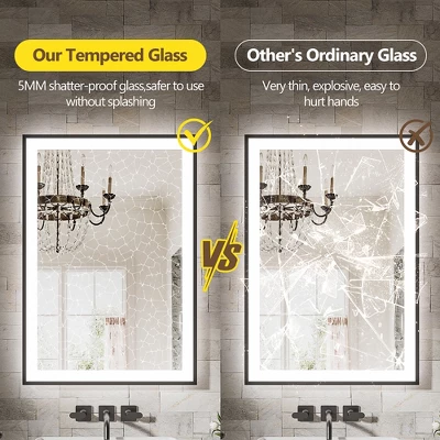 • [Safe & Durable]: UL-certified components with protective casing. LED lifespan: 50,000+ hours (45+ years at 3 hours daily use). Copper-free silver mirror with far lower corrosion rates than standard mirrors. Features 5mm tempered glass for shatterproof, explosion-resistant, and long-lasting safety.
