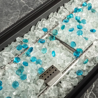 - Steady flames, uninterrupted ambiance: A key feature is the tempered glass windscreen, which ensures a steady flame even in windy weather. Whether entertaining friends or relaxing alone, enjoy the warm, inviting glow of a fire pit without distractions. The combination of marble, rattan, and dancing flames creates a timeless ambience for any occasion.