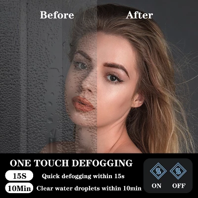 - [ANTI-FOG] : Starting anti-fog function immediately when you turn on the anti-fog button, it need 5-10 minutes to clear this led bathroom mirror completely, safe and energy-saving, so open this function in advance before you use it(May need more time in Winter)