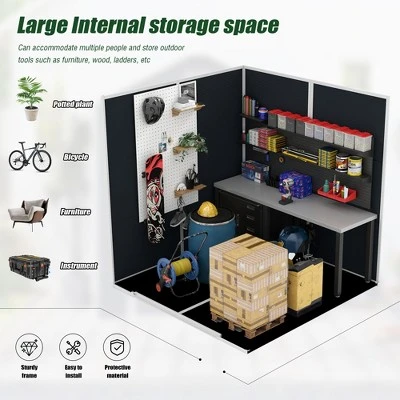 - The large storage space is a highlight of this plastic room. Sufficient internal volume, can easily accommodate all kinds of furniture, equipment, materials, to meet your diverse storage needs. Whether as an outdoor studio, storing tools and materials; Or as a leisure holiday house, set beds, tables and chairs and other daily necessities; Or as a warehouse, store goods and debris, can be easily