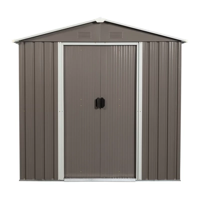 [Robust Construction] Nothing irks a garden hobbyist more than the sight of a collapsed shed. Luckily, this shed utilizes galvanized iron frame which greatly increase the overall sturdiness. On top of that, the galvanized steel panels, coated with eco-friendly painting, can endure harsh weather for at least 6 years.[Punched Vents] Unlike typical sheds with plastic vents, this shed comes with four integrated punched vents which will not deteriorate against sunlight.[Sliding Doors and Padlock] Pad-lockable sliding doors for easy entry and exit. A heavy-duty complimentary padlock grants extra safety.[Easy to assemble] DIY assembly with pre-cut and pre-drilled parts for your convenience. The uniquely designed frames provide not only extra sturdiness but also a smooth assembly process. No experience is needed to finish the shed.[Gift Tool] Metal Foundation Frame,Anchors,Hooks,Shelf padlock,Gloves Easy-build shed made of Electro Galvanized Steel treated for strong corrosion resistance. UV resistant steel panels protect against rot, insects, and extreme weather conditions.Product Highlights