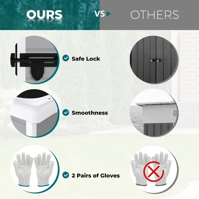 - Waterproof and Easy to clean The shed’s construction is made of robust, hassle-free plastic. This material has good waterproof performance, there are stains on the surface is also very easy to clean.