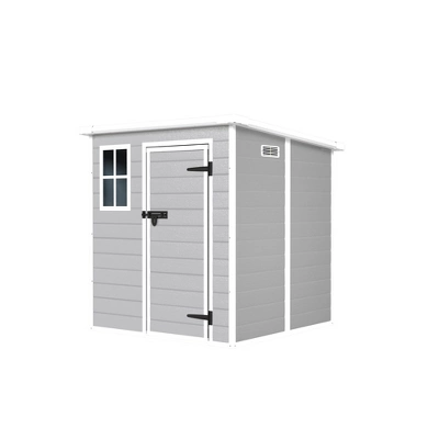 ECO-FRIENDLY RESIN MATERIALOur storage shed is crafted with 12MM premium polypropylene resin plastic, which is recyclable and eco-friendly. Resin shed is corrosion-resistant, waterproof, rustproof and with UV protection for more than 8000 hours, less bending and puncturing, worry-free for use in all weather conditions. It can be used daily for five years without fading.Maximum Security and WaterproofingThe lockable door of the outside storage house offers enhanced security, giving you peace of mind when storing valuable items. The sloping roof design provides superior waterproofing, keeping your belongings safe and from being damp, regardless of the weatherWeights & Dimensionsstorage shed dimensions6*6 FTColorGrayMaterialpolypropyleneProduct DimensionsW 71.45″*D71.45″*H77.55¡±Product door sizeW66.92″*H27.55¡±G.W79.8lbsN.W71.4lbsStyleBackyard Garden Tool ShedBackyard Garden Tool ShedWaterproofWaterproof50kg per squareWindow material1.5mm acrylic materialUltraviolet Light ProtectionYesAssembly RequiredYes
