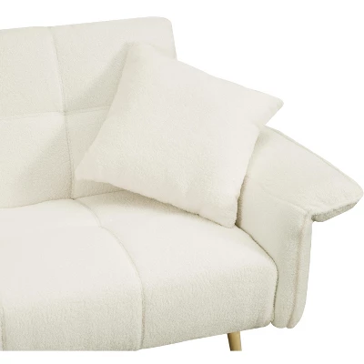 70.1 “futon sofa bed, convertible double sofa bed with folding armrests for living rooms and small Spaces?High quality: The Teddy Polyester is soft£¬skin-friendly and breathable,and the wood frame is sturdyThe sofa backrest can be folded down to be a bed. Get ready for overnight guests and take advantage of the adjustable back to switch from sofa to comfortable bed in seconds.The backrest and the arm have 3 adjustable postures provide different levels of comfort. To meet your different needs