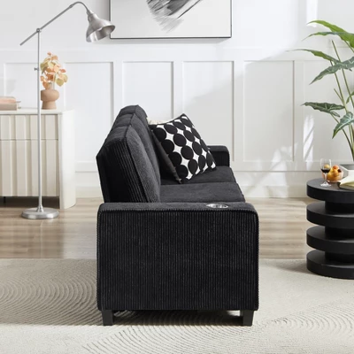 The armrests are equipped with cup holders on both sides for drinking glasses or as ashtraysSelected high-quality Polyester Polyester, soft and comfortable to the touch, thick texture, soft touch, good warmth, and good wear resistance and dirt resistanceHigh-density sponge pads with springs have good resilience and will not lose their shape even when sitting for long periods of time, and the fluffy backrest provides good support, which helps to release pressure on the lower back. Imagine how relaxing you will be at the end of a busy day with this comfy sofa as your living room!The simple and atmospheric style can be perfectly integrated with various decoration styles to add a fashion and elegance to your home. Whether it’s modern, minimalist, Scandinavian or Chinese, this extendable three-seater sofa can be the highlight of your living room, reflecting your taste and quality of life.