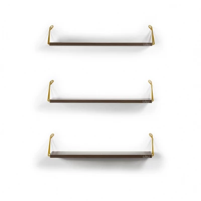 Altai Floating Wall Decor Wall Mounted Rustic Decorative Hanging Metal Bracket Triple Shelfs for Books, Walnut/Yellow