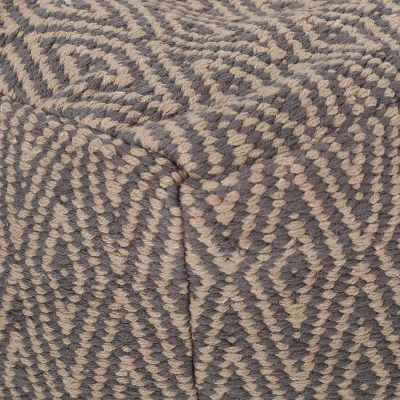 Our Hand – loomed poufs are expertly designed.Has a subtle diamond pattern that makes it the perfect home accessory.Made with cotton fiber featuring a wide array of colors.Fully assembled.Spot clean only.Filled with polystyrene beads.Capacity 250 pounds.Dimensions: 15inx15inx15in.