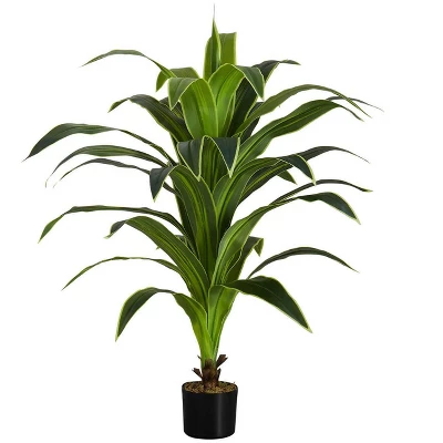 Add a soothing burst of greenery to any floor of your home or office with this 47″ tall artificial indoor dracaena tree in a 5″ black pot.34 real touch, adjustable, lush green leaves create a lifelike appearance.This easy-care faux potted plant is made from the highest quality materials and requires no maintenance or watering, for a sustainable, environmentally friendly, decorative accent that will last a lifetime.No assembly required; product dimensions: 31.5 in. L x 31.5 in. W x 47.25 in. H