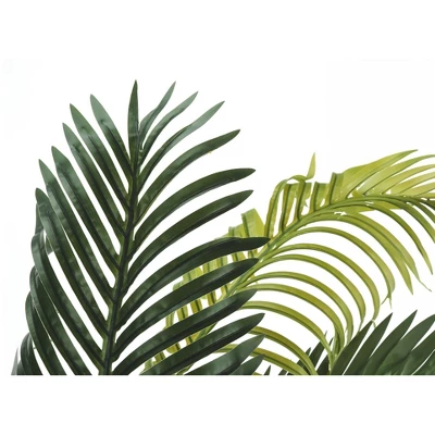 Add a tropical burst of greenery to any floor of your home or office with this 47″ tall artificial indoor palm tree in a 5″ black pot.8 real touch, adjustable, lush green palm leaves add an exotic touch to any room.This easy-care faux potted plant is made from the highest quality materials and requires no maintenance or watering, for a sustainable, environmentally friendly, decorative accent that will last a lifetime.No assembly required; product dimensions: 29.5 in. L x 31.5 in. W x 47.25 in. H