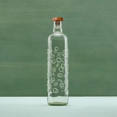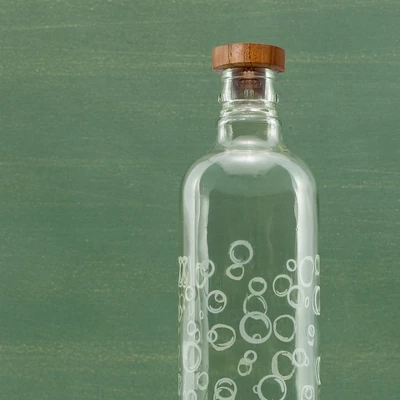 Ergonomically designed for a comfortable, snug gripFeatures textured bubble glass for a charming, stylish lookComes with a natural finish wooden stopper that provides a secure sealPerfect blend of functionality and aesthetic appealIdeal for staying hydrated in styleMATERIAL: GlassCOLOR: ClearCAPACITY: 750 ml