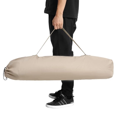 HAMMOCK CHAIR DESIGNThe hammock camping chair can lean back and adjust the straps to find the perfect sitting angle simply.STURDY & DURABLEThe triangle multipole cross bracket increases the stability of the swing camping chair and bears 250lbs pounds of weight.CONVENIENT & PORTABLEThis chair features a hammock-style seat that allows you to recline and unwind. The fabric is soft and breathable, providing a comfortable lounging experience even during hot summer days.FOLDING SIZEThe Folding Hammock camping chair occupies a small amount of space when folded, making it practical for transportation. Its compact size ensures that users can easily pack it in their backpacks, car trunks, or luggage without taking up much room, enabling hassle-free travel.Hammock Camping Chair, Folding Portable Rocking ChairColorKhakiProduct Dimensions35″D x 38″W x 42″HRecommended Uses For ProductAdults, camping,Outdoor, Garden, PatioFrame MaterialSteelUnit Count2pcsMaximum Weight Recommendation250PoundsCarton size1pc: 37.80” W x 8.27” D x 11.20” HItem Weight26.46 PoundsCountry of OriginChina