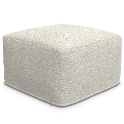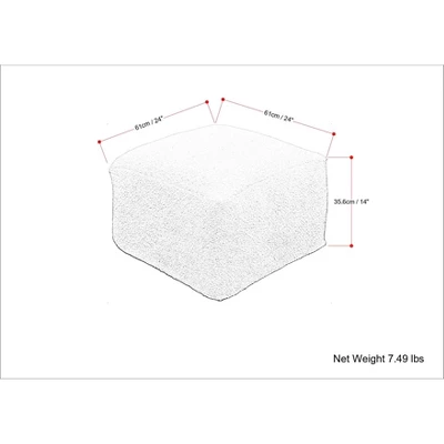Dimensions: 24inD x 24inW x 14inH – Perfect for living rooms, bedrooms, or reading nooks, this boucle ottoman serves as a footrest, casual seat, or decorative accent piece.Soft and Textured Design: Upholstered in luxurious ivory boucle fabric, this square pouf ottoman offers a cozy, modern aesthetic with a beautifully tactile surface.Comfortable and Supportive: Filled with polystyrene EPS balls, this soft cushioned footrest maintains its shape while providing a comfortable seating option.Durable Craftsmanship: Handcrafted with a cotton/polyester blend outer cover and a fire-retardant cotton blend inner liner, ensuring both quality and longevity.Lightweight and Portable: Designed for easy movement, this versatile small ottoman allows for flexible placement wherever extra seating or comfort is needed.Timeless Appeal: The neutral ivory tone, contemporary style, and boucle texture complement a variety of d¨¦cor styles, from modern minimalism to cozy farmhouse aesthetics.Eco-Friendly Packaging: Styrofoam-free packaging, with contributions to CleanHub supporting plastic-neutral initiatives to reduce plastic waste.No Assembly Required: Ready to use straight out of the box, making it a hassle-free addition to your home.