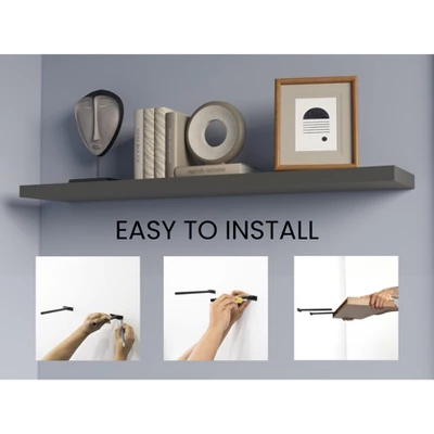 Greer Floating Shelf in Melamine x2, Grey”This set of two floating shelves is perfect for optimizing space in any room of your home or office. Their minimalist design adds a modern and elegant touch to your interior decor. Made with durable materials, these shelves are ideal for displaying decorations, books, or small personal items. Easy and secure wall mounting makes them a practical and functional choice for living rooms, bedrooms, or offices.Dimensions per shelf: 1.5″” (H) x 47.3″” (W) x 9.8″” (D).”
