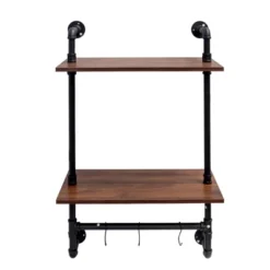 Illia Floating Wall Decor Wall Mounted Rustic Decorative Hanging Shelf For Books, Set Of 2,Walnut