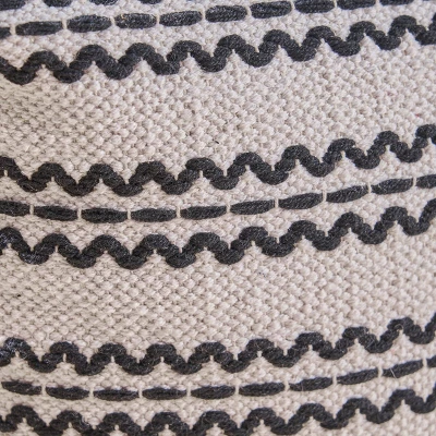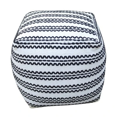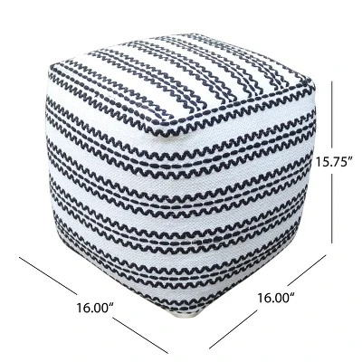 Made with strong cotton making it a durable option for your homeFinished in a natural and black design, 16x16x16 square poufCapacity 200 poundsFully assembledSpot clean onlyFilled with polystyrene beads