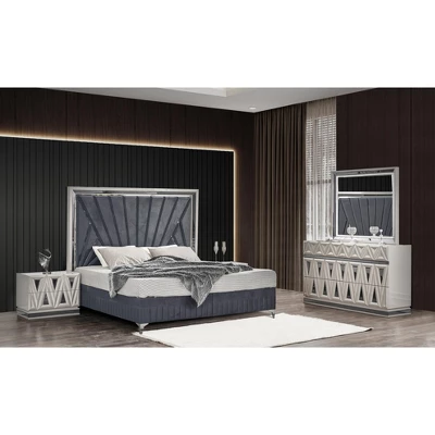 Lavita 2-Drawer Nightstand:Crafted from a combination of poplar wood and MDF, this 2-drawer nightstand is beautifully upholstered in plush velvet fabric for a luxurious touch. The drawers feature diamond-shaped fronts adorned with sparkling crystal accents, adding a unique and sophisticated detail to the piece.The soft-closing mechanism ensures a gentle and quiet closure, enhancing the nightstand’s functionality. It also includes a dust-proofed bottom to keep your belongings clean and protected. Its elegant design is further enhanced by a high gloss lacquer finish, adding a modern flair to any bedroom.Dimensions:27″W * 18″L * 22″H