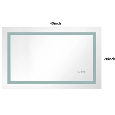 LED Bathroom Mirror 40inx 28inwith Front And Backlight, Large Dimmable Wall Mirrors With Anti-Fog, Memory, 3 Colors, LED Vanity Mirror