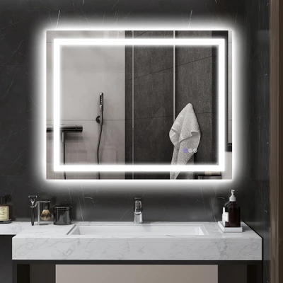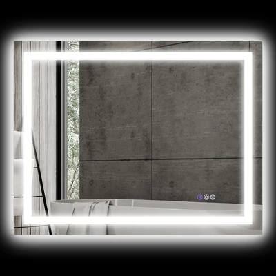 Backlit & Front-Lit: Our seemingly frameless bathroom mirror features dual lighting sources. This design ensures ample brightness for makeup application, skincare routines, shaving, and dressing up.Adjustable Brightness & Color Temperature: Create bathroom ambiance with our mirror. Effortlessly adjust its brightness and switch between 3 color temperatures (6500K-3000K-4500K). Or, long-press the button for near-infinite color temperature customization (6500K-3000K).Anti-Fog & Memory Function: Effortlessly maintain a clear mirror with the built-in anti-fog function. At the press of a button, you can defog our LED mirror, ensuring constant clarity. The defogger will automatically turn off after 1 hour for convenience, and its memory function retains your settings.Quality: Enjoy a high-definition image with a CRI90+ rating and 5mm copper-free HQ silver-coated glass. Our LED bathroom mirror has an explosion-proof film on the back for safety. An IP44 waterproof rating and concealed LED stripe in the frame provide safe light in bathroom environments.Simple: Our lighted bathroom mirror is easy to install with included mounting hardware. It has wall brackets for secure hanging vertically or horizontally and can be installed with a plug or hardwired connection (if you opt for hardwired installation, you must handle the wiring independently.)