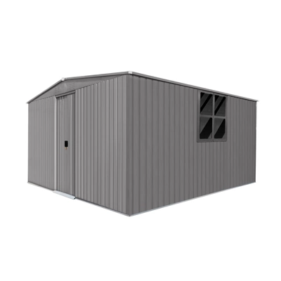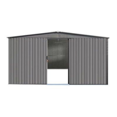 The detailed instructions make it easy to complete the installation step by step.Unlike typical sheds with plastic vents, this shed comes with two integrated punched vents which will not deteriorate against sunlight.This storage shed has two functions: tools are stored in the shed and firewood is stored on the side.Apex roof sheds have the apex gable ends and are the most popular and economical type of metal shed design.