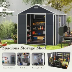 8ft X 10ft Outdoor Metal Storage Shed With Meatl Foundation,Black