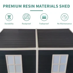 8ft X 10ft Outdoor Metal Storage Shed With Metal Foundation,Coffee