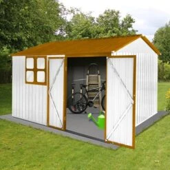 Metal Garden Sheds 10ftx8ft Outdoor Storage Sheds White+yellow With Window
