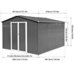 Metal Garden Sheds 12ftx10ft Outdoor Storage Sheds White+Grey