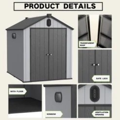 XWT012-1 6*8ft Resin Plastic Storage Shed For Backyard Garden Big Spire Tool Storage