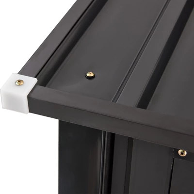 - DURABLE AND WEATHER-RESISTANT: Our outdoor storage tool shed is designed with a sloping roof for quick drainage, effectively preventing rainwater from accumulating and causing rust. Made with UV and moisture-resistant materials, this storage shed offers a protected and safe environment for your valuable tools and equipment. Its sleek black tones and clean lines seamlessly blend into any yard or patio, adding an attractive architectural element to your outdoor space.