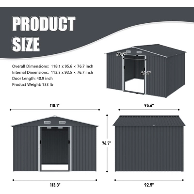 - [Durable Construction & Spacious Interior] The outdoor tool shed is made with steel, highly resistant to corrosion, weather resistance and UV protection. The thick wall panels provide adequate suppor