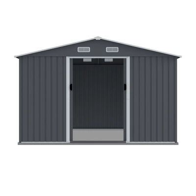 [Robust Construction] Nothing irks a garden hobbyist more than the sight of a collapsed shed. Luckily, this shed utilizes galvanized iron frame which greatly increase the overall sturdiness. On top of that, the galvanized steel panels, coated with eco-friendly painting, can endure harsh weather for at least 6 years.[Punched Vents] Unlike typical sheds with plastic vents, this shed comes with four integrated punched vents which will not deteriorate against sunlight.[Sliding Doors and Padlock] Pad-lockable sliding doors for easy entry and exit. A heavy-duty complimentary padlock grants extra safety.[Easy to assemble] DIY assembly with pre-cut and pre-drilled parts for your convenience. The uniquely designed frames provide not only extra sturdiness but also a smooth assembly process. No experience is needed to finish the shed.[Gift Tool] Metal Foundation Frame,Anchors,Hooks,Shelf padlock,Gloves Easy-build shed made of Electro Galvanized Steel treated for strong corrosion resistance. UV resistant steel panels protect against rot, insects, and extreme weather conditions.Product Highlights