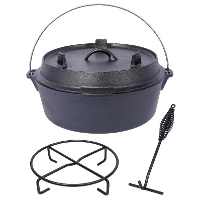- Designed with convenience at its core, this cast iron Dutch oven features a robust built-in carrying handle, enabling you to effortlessly tote it from your vehicle to the campsite. Moreover, the oven can be securely suspended from a tripod stand on level surfaces, providing you with unparalleled flexibility in your cooking setup. With its seamless combination of portability and adaptability, this Dutch oven is the ultimate companion for any outdoor cooking enthusiast.