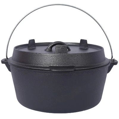 Crafted to endure the harshest of outdoor conditions, this is a camping essential. Whether you’re simmering a hearty stew over an open campfire, baking a delicious cobbler in hot coals, or slow-cooking a savory meal during your wilderness escapades, this Dutch oven’s excellent heat retention and even distribution ensure culinary success every time. It’s the ultimate companion for creating unforgettable camping feasts.The Dutch oven’s ingeniously designed lid is a true marvel of functionality. Fitted with sturdy legs, it seamlessly transforms into a skillet or griddle, unlocking a whole new realm of culinary possibilities during your camping trips. Whether you’re craving crispy bacon for breakfast, searing succulent steaks for dinner, or flipping fluffy pancakes under the open sky, this dual – purpose lid has you covered.Designed with convenience at its core, this cast iron Dutch oven features a robust built-in carrying handle, enabling you to effortlessly tote it from your vehicle to the campsite. Moreover, the oven can be securely suspended from a tripod stand on level surfaces, providing you with unparalleled flexibility in your cooking setup. With its seamless combination of portability and adaptability, this Dutch oven is the ultimate companion for any outdoor cooking enthusiast.Your well-being and convenience are our top priorities. That’s why we include a specialized dutch oven lid lifter, engineered to ensure a secure and hassle – free experience when handling hot lids. This essential accessory minimizes the risk of burns and accidental spills, allowing you to confidently maneuver the lid while cooking. It’s a thoughtful addition that enhances your outdoor cooking adventure, giving you peace of mind with every use.