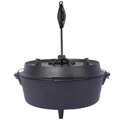 Pre-Seasoned Cast Iron Dutch Oven With Skillet Lid, Outdoor Camping Deep Pot For Camping Fireplace Cooking BBQ Baking Campfire, Leg Base, 8 Quart