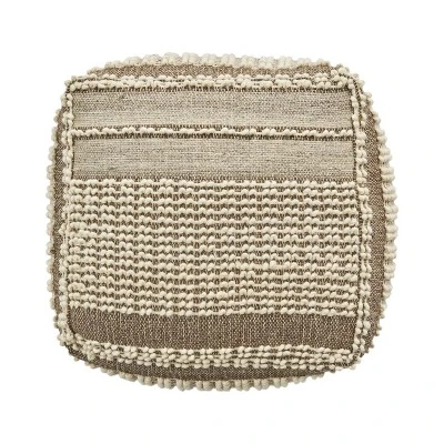 Gives your home a cozy spot of texture and style.Handcrafted with a tufted design in brown and beige.Fully assembled.Spot clean only.Made of 75% wool and 25% cotton.Filled with polystyrene beads.Dimensions: 26inx26inx16.5in