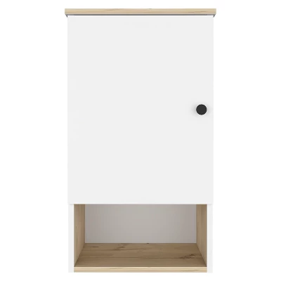 Oner Door Cabinet.One Open Shelf (14.4″W X 13″D X 6.9″H).Treated Engineered Wood.Hinges with soft close system Decor and setting objects are not included.
